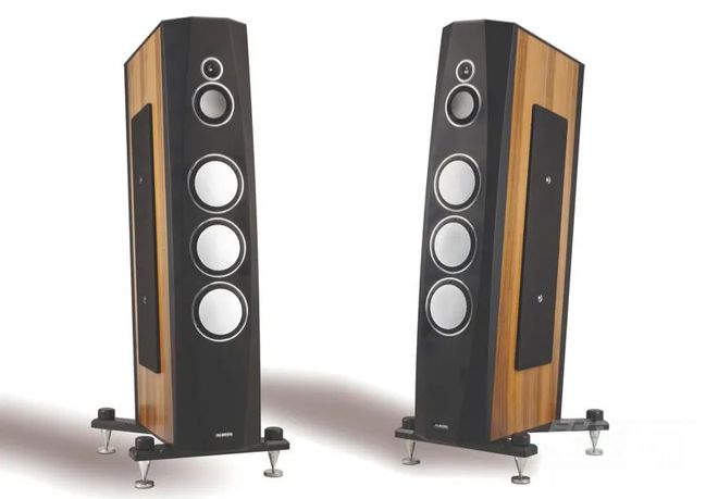 Albedo Acclara应该是露出次数最多的型号了,我个人也很喜欢这个型号。Albedo通过独特的Helmholine系统,改善了在传输线方式下产生的对中低频段的影响。Acclara采用三路五单元设计,配备三个英寸Accuton低音、1个5英寸Accuton中音及1只1英寸Accuton高音,确保详尽的全频覆盖与快速动态响应。这里的高音单元类似于Focal那种反球顶“W”单元。分频器使用了德国Mundorf的组件,包括Silver Gold Supreme电容器、Supreme电阻器和Icore电感器等等。箱体由40 50 mm厚加压加工特殊积层合板构成,辅以侧板长螺栓加强固定,有效消除杂散振动。胡桃木外观配搭前障板黑色皮革贴面,兼备视觉美感与意大利式设计气质。